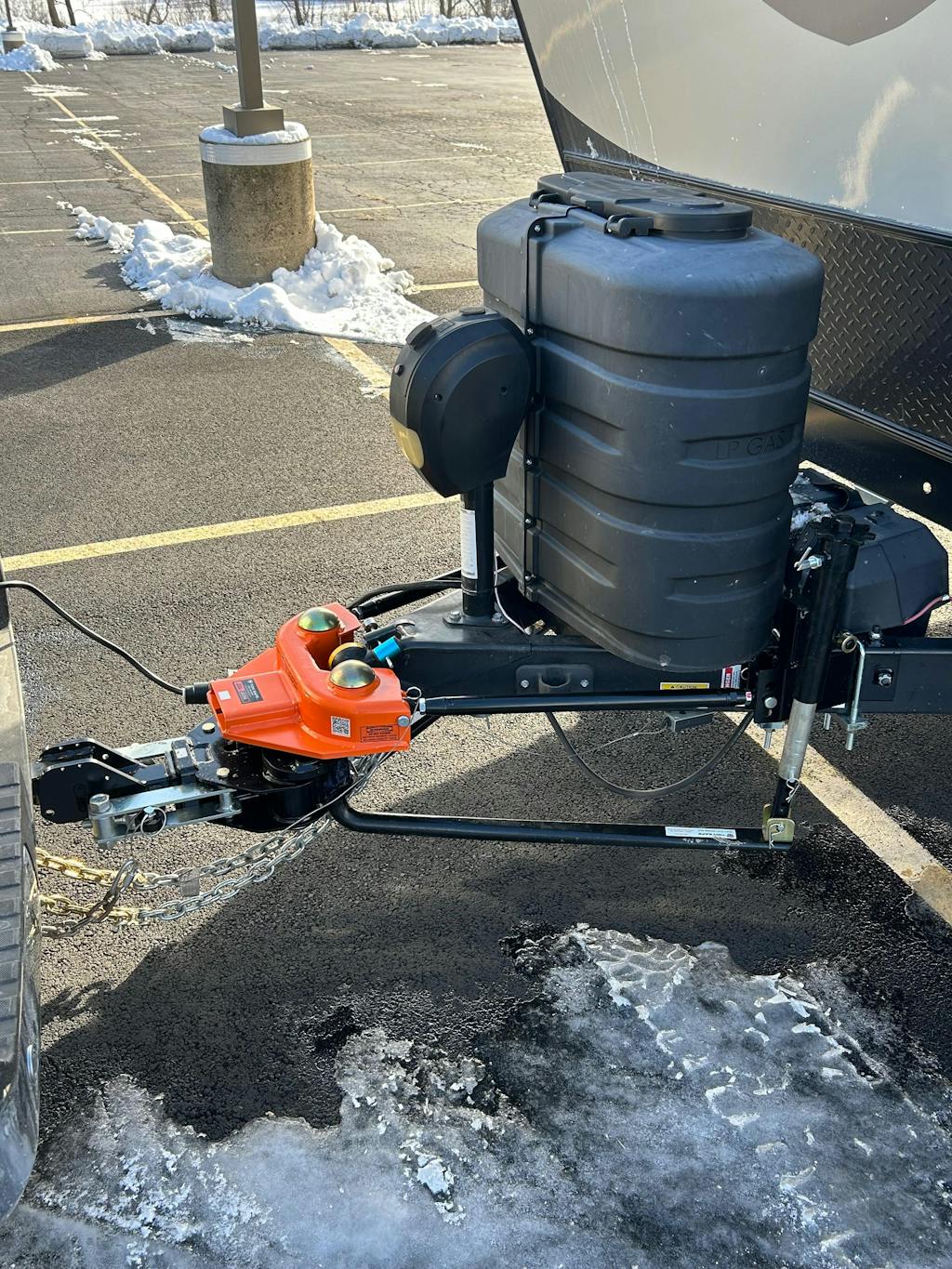 I had a traditional ball hitch with an anti-sway weight distribution hitch for my first camper. Although I’m sure it helped stabilize my rig while towing, it was awkward to use, noisy when turning or backing and unfortunately, did not resolve the issue of being pulled in and pushed out when being passed by trucks on the road.